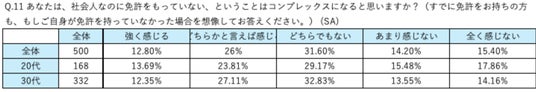 Q11. あなたは、社会人なのに免許をもっていない、ということはコンプレックスになると思いますか?