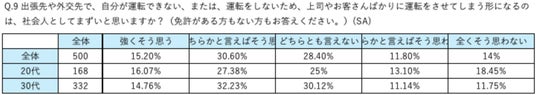 Q9. 出張先や外交先で、自分が運転できない、または、運転をしないため、上司やお客さんばかりに運転をさせてしまう形になるのは、社会人としてまずいと思いますか?