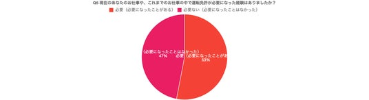 Q5. 現在のあなたのお仕事や、これまでのお仕事の中で運転免許が必要になった経験はありますか?