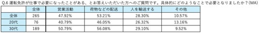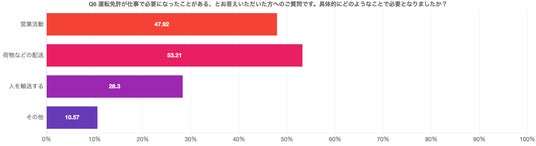 Q6. 運転免許が仕事で必要になったことがある、とお答えいただいた方への質問です。具体的にどのようなことで必要となりましたか?