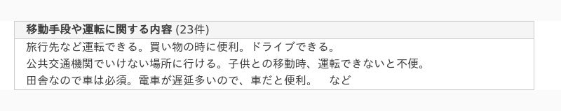 (都市部在住者でも「移動の自由」や「身分証明書としての利用」で免許の利便性を実感。)