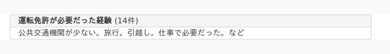 2. 運転免許が必要だった経験 - 14件 (29.8%)