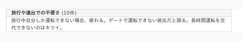1. 旅行や遠出に関する不便さ - 10件 (29.4%)