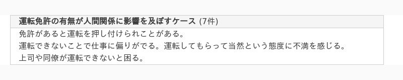 (同僚に免許を持っていて欲しいと思う声が多く、免許がないことで生じるストレスや不便さが浮き彫りに。)