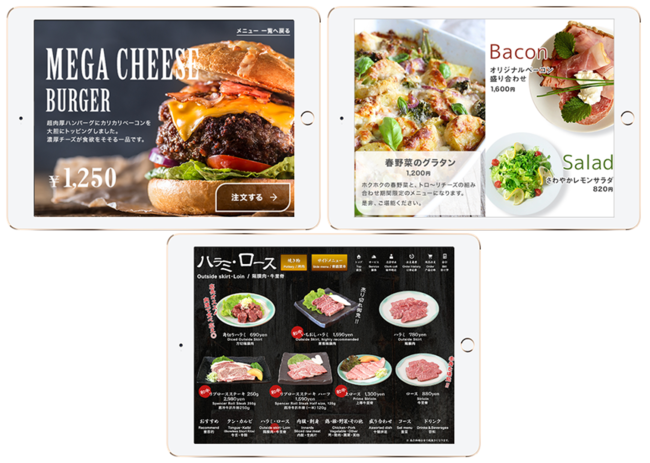 イグレック社の「iPadセルフオーダー」と連携できるようになりました。「完全フリーレイアウトデザイン」を採用しているため、iPadならではの画像の鮮明さを活かしながら、お好きなメニュー構成が実現でき、お客様の購買意欲UPにつながります。
