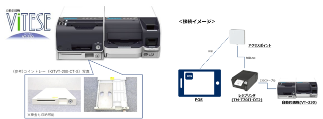 東芝テック社の「自動釣銭機(VT-330)」と連携できるようになりました。