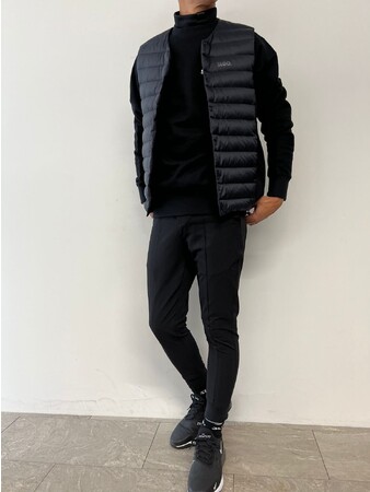シンプルにこだわりながらも、裏起毛ハイネックやリブパンツとのコーディネートのバランスを重視して仕上げています。