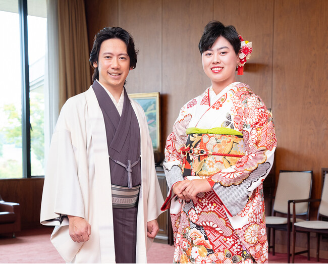 日本和装社長の道面義雄も同席する中、あでやかな姿を披露してくださった笹生プロ。