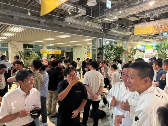 2024年1月1日に能登半島地震が発生してから約半年、まだ復旧が十分に進んでいない能登エリアの現状を、自身も被災され甚大な被害を受けた川嶋シェフが、当日の状況や被災後にどのような活動を行ってきたのか、今後どのように能登を盛り上げていくのかを、ご自身の想いと共に約100名の参加者の皆様へ伝えられました。立食形式にて開催された事もあり、食・農の分野のキーパーソン同士での活発な交流が行われていました。