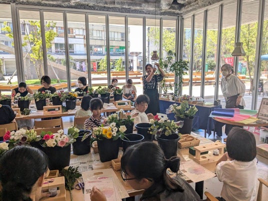 愛知県は昭和37年以降60年以上連続で花の産出額が日本一であり、特に東三河地域では県全体の約7割の花が生産されています。そんな花の産地である東三河の3市の花を使った染め花&アレンジ教室を開催しました。当日はたくさんの親子連れで賑わい、白いマムやバラを自分で染めたりアレンジして楽しみました。