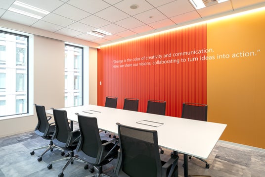 日本の伝統色にちなんだテーマカラーと部屋名称を採用した来客用会議室 Kohaku (琥珀)
