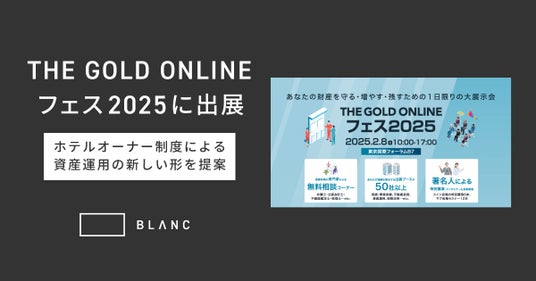 自然共生型ホテルを運営する株式会社BLANC(本社:東京都港区、代表取締役:山中 拓也、以下「当社」)は、2025年2月8日(土)に東京国際フォーラムで開催される『THE GOLD ONLINE フェス2025』に出展します。今年1月30日に発表した新拠点『BLANC YATSUGATAKE(ブランク八ヶ岳)』の事例などを中心に、“自然共生型ホテル”という「新しい資産運用の可能性」を提案します。本イベントでは、当社のビジョンと最新プロジェクトの詳細を直接ご覧いただける機会を提供します。
