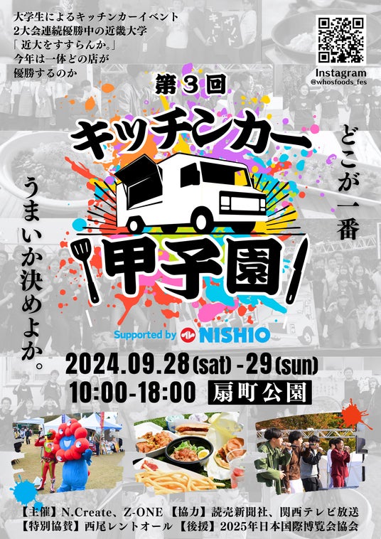WHO’s FOODS FES.(フーズフーズフェス)実行委員会は、大阪でキッチンカーイベントを中心にイベントを企画、運営しています。2022年、学生がチャレンジできる場を提供することを目的として始まった『キッチンカー甲子園』が、今年で3回目を迎えます。