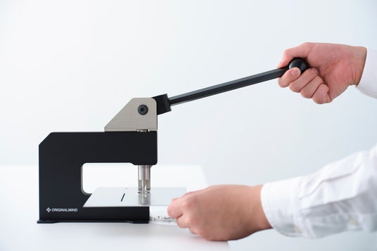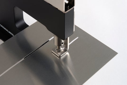 下穴いらずで、すぐに打ち抜き加工が可能。「GOIGOI2」は、材料をセットしてハンドルを下げるだけで、穴あけや追い抜き加工を自由自在に行うことができます。事前にドリルなどで、刃を通すための下穴をあける必要はありません。つくりたいカタチを思い描いたら、すぐその場で加工を始めることができます。
