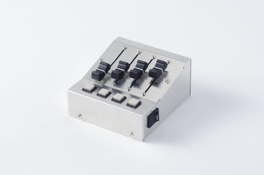 スライドボリュームスライドツマミが出るスリットや、ボタンをはめ込む部分の打ち抜き加工を「GOIGOI2」で行いました。また、折り曲げ加工には「MAGEMAGE」を使用しました。