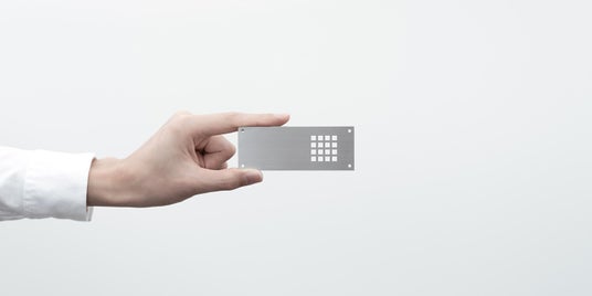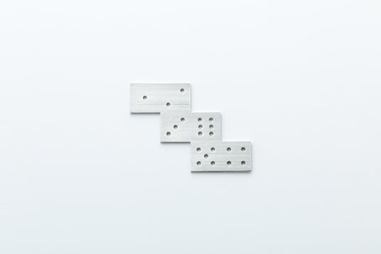 サイコロオプション品の「Φ2.5mm 丸穴用パンチ&ダイ」を使用して、折りたたむとサイコロになるようアルミ板を加工しました。