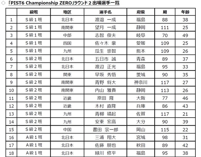 ◇「PIST6 Championship ZERO」ラウンド2出場 注目選手