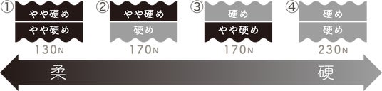 ※2.3.のN(ニュートン)数は同等ですが、寝心地は3.の組み合わせの方が硬く感じます。