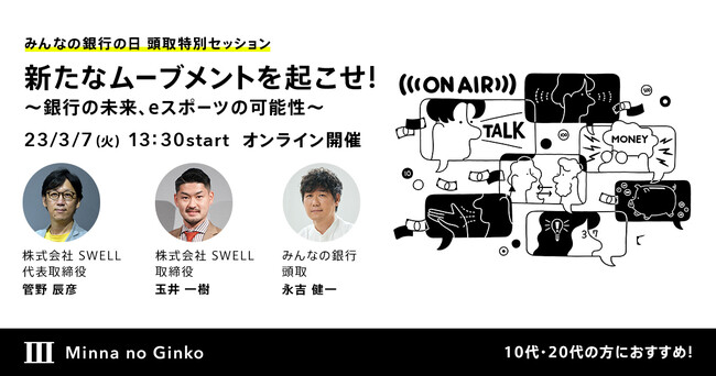 「業界に新しいムーブメントを起こす」をテーマにオンライントークセッションで、みんなの銀行 永吉頭取とともに銀行の未来やeスポーツの可能性ついて考えていきます。