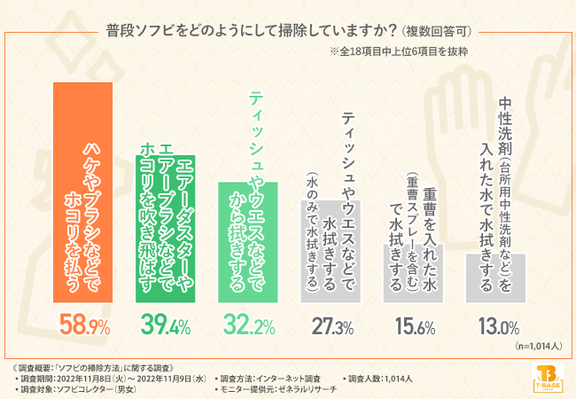 それを救うためには、ハケやブラシでホコリを取り除くか、中性洗剤などで水拭きするなどの方法で掃除している方が多いことがわかりました。