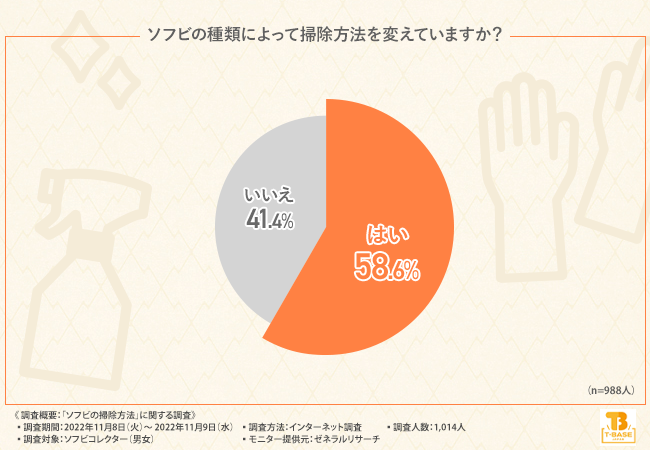 「ソフビの種類によって掃除方法を変えていますか?」と質問したところ、約6割の方が『はい(58.6%)』と回答しました。
