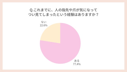 「これまでに人の指先や爪が気になってつい見てしまったという経験はありますか?」と尋ねたところ、「ある」と回答した女性は77.4%に上りました。思わず他人の爪を見てしまった経験には、ポジティブな理由とネガティブな理由があります。