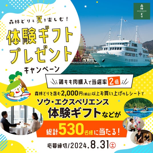 全国の「森林どり」販売店で実施するソウ・エクスペリエンス体験ギフト等が総計530名様に当たるキャンペーンです。