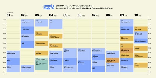 株式会社epigram(エピグラム:東京都目黒区上目黒1-3-9-5F/代表:玉井裕規)は、2024年11月1日~10日の10日間、丸子橋第2広場・ピクニック広場で、レコード・音楽・クラフトビールをテーマに開催する入場フリーイベント「Sound&Chair’24」のタイムテーブルを発表します。