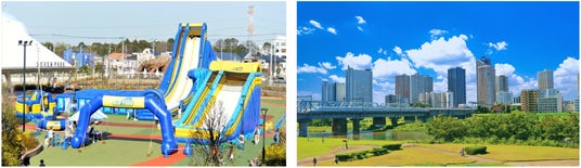河川敷に巨大ふわふわが大集合!親子で一緒に楽しめる体験型イベント。高さ13mの超大型スライダーや親子で一緒に楽しめる「迷路」など様々なアトラクションが楽しめます。