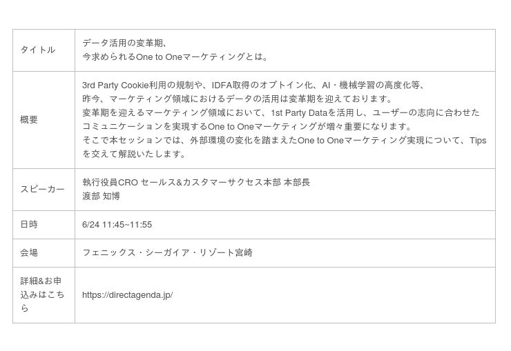スプリームシステム株式会社(本社:東京都豊島区、代表取締役:佐久間 卓哉)は、2022年6月24日(金)より、株式会社ナノベーション主催の「ダイレクトアジェンダ2022」にて登壇致します。