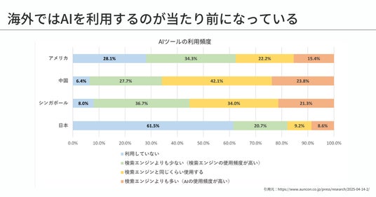 参照:アウンコンサルティング株式会社による「生成AIツールの利用状況・Google検索におけるAI利用の実態に関する調査」