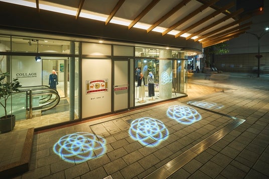 パイフォトニクス株式会社(浜松市東区)の光パターン形成LED照明「ホロライト・セブンリング」を使用して、雪の結晶をイメージした光の装飾を行っています。