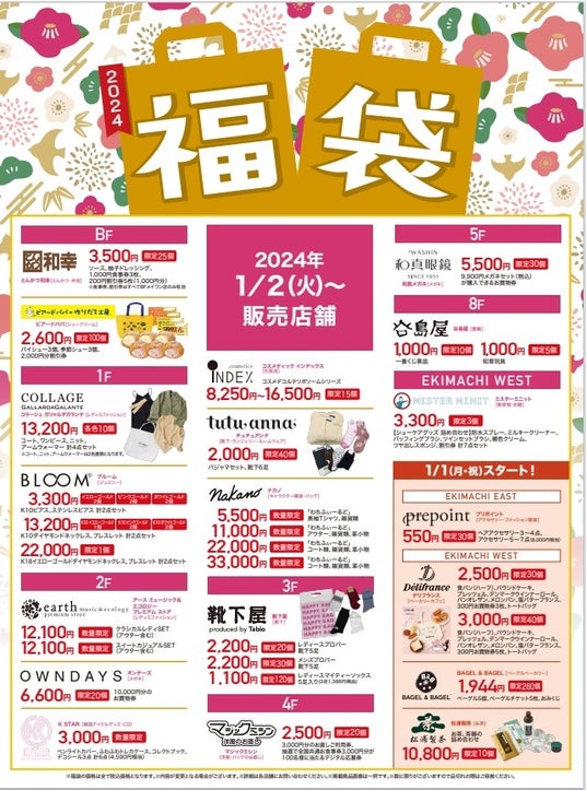 ※エキマチの福袋対象店は、1/1(月・祝)~販売いたします。
