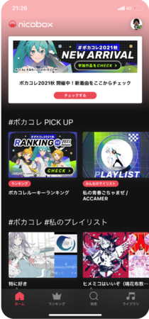 ニコニコ動画に投稿されているボカロ楽曲や「歌ってみた」などをミュージックプレイヤーのように楽しめるニコニコ公式のアプリ「NicoBox」。ボカコレ開催期間中は、ボカコレ新着曲やランキング登場曲のプレイリストを再生できるボカコレモードが利用できるようになります。NicoBoxでの再生はボカコレランキングに反映され、バックグラウンド再生にも対応。「サビメドレー*」機能を使えば音楽紹介番組のようにサビ部分だけメドレー形式で再生でき、たくさんのボカロ曲と出会うことができます。