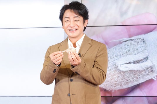 また、まー之助くんと一緒に遊ぶアイテムとして「かむかむTOYS ねずみちゃん」を特別に公開し、普段の過ごし方について紹介しました。「おもちゃを投げると、走って持って帰ってくるんですよ。これが永遠に終わりがないんです…!」とそのおもちゃの使い方を説明した後、まー之助くんとのエピソードについて「朝起きると、(おもちゃを)僕と妻が寝ている間に置いてるんですよ」と幸せそうに話しました。