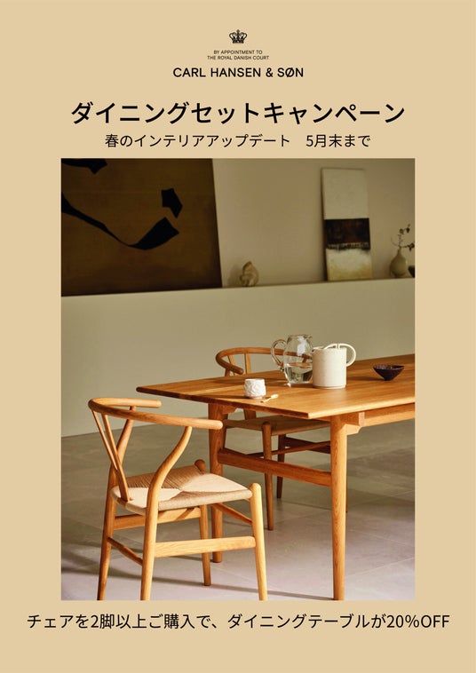1908年創業 デンマーク王室御用達家具メーカー (Carl Hansen&Son)は、「新生活に合わせたダイニングシーンのご提案」として、2026年5月末まで、春のインテリアアップデート キャンペーンを実施しています。