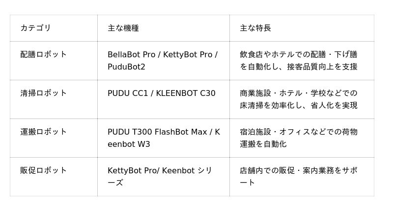 本サービスでは、飲食・ホテル・介護・医療・商業施設など、さまざまな業種に対応する配膳ロボット・清掃ロボット・運搬ロボット・販促ロボットを取り扱い、導入前の課題ヒアリングからトライアル、運用設計、アフターサポートまでをワンストップで提供いたします。