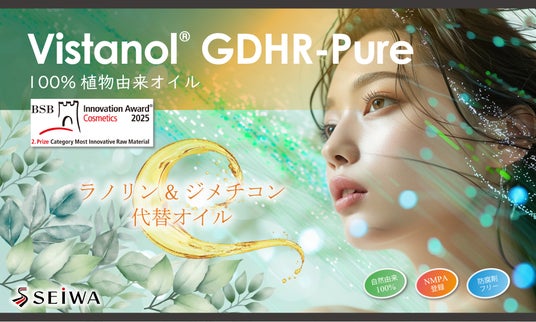Vistanol GDHR-Pureは、世界中で汎用されているラノリンやジメチコンと同等の機能を持ち、100%植物由来を実現した技術力が評価され、BSB Innovation Awardの機能性原料カテゴリーにおいて2位に選ばれました。