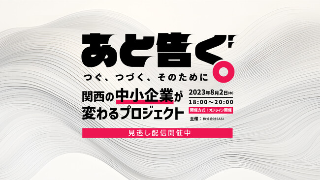 今後、定期的なイベント開催やウェビナーの実施に伴い、2023年8月2日に開催した第1弾『あと告ぐ。-つぐ、つづく、そのために-』の模様を期間限定にて無料配信。8月10日(木)18:00より下記フォーム申込み者へ視聴用URLを配布。