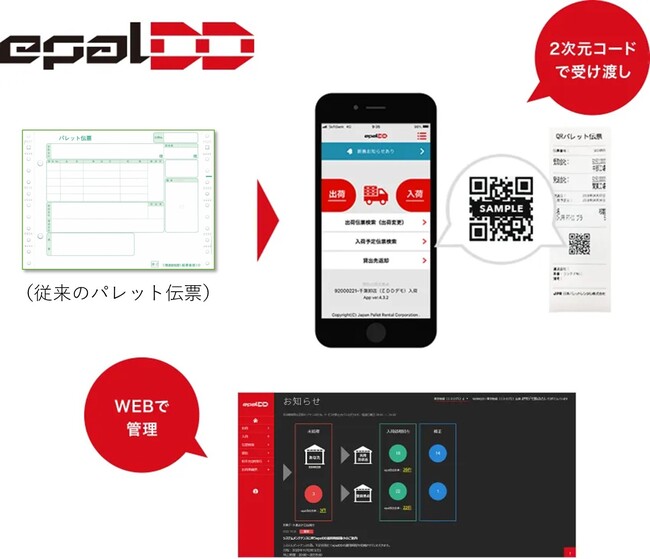 JPRは、レンタルパレットをご利用のお客様に、パレット伝票電子化のためのシステム「epalDD」(イーパル ディー ディー)をご導入いただくことを通じて、利用企業間における受け払いに使用する伝票を複写式伝票から、電子伝票へ移行する取り組みを進めてまいりました。