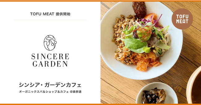 このたび、ライフスタイルメディスンをコンセプトに、表参道にあるオーガニックスパ&ショップ &カフェ「シンシア・ガーデンカフェ」とのコラボレーションにより、TOFU MEATのメニュー提供を開始することをお知らせします。