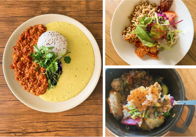 「シンシア・ガーデンカフェ」のベジタリアンにこだわり抜いた健康的なメニューに、TOFU MEATを加え、新たなアレンジでキーマカレーやそぼろ丼などのメニューがラインナップされ、植物性のタンパク源を取り入れたヘルシーな食事が楽しめます。