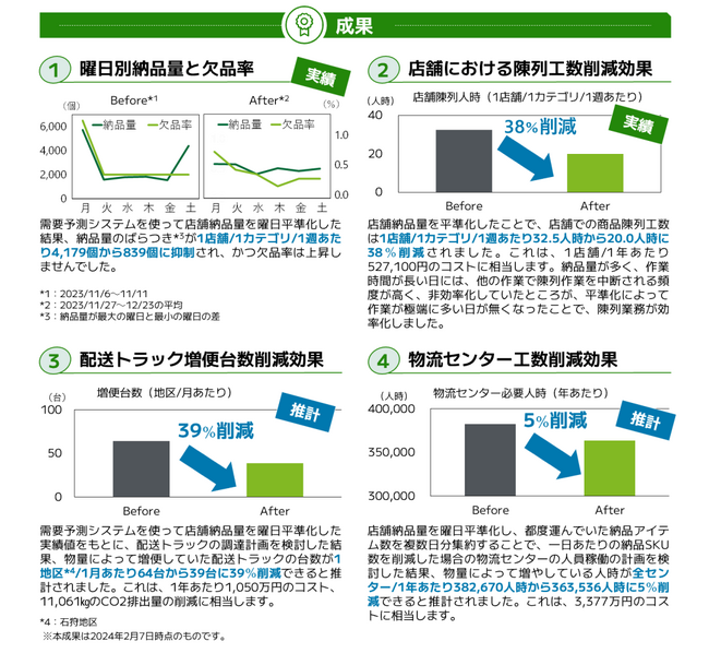 なお、本実証実験は現在も実施中であり、他店舗・他カテゴリーでも納品量を平準化した場合の実績値を検証予定です。