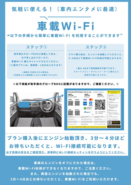 昨今のカーメディアや車内エンタメを充実させるため、車載Wi-Fiとしてレンタカーへの搭載を行い、