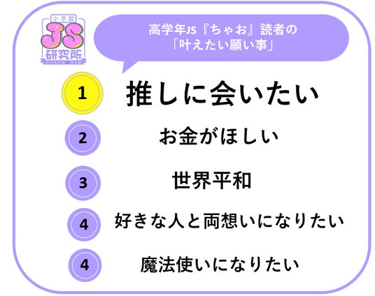 ★ 「なんでも願いが叶うなら、何をおねがいしたい?」JSの『願い事』第1位は「推しに会いたい」