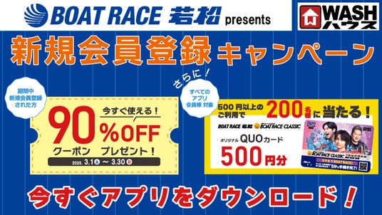 さらに!すべてのWASHハウスアプリ会員様を対象にしたBOAT RACE 若松「60th BOAT RACE CRASSIC」オリジナルQUOカードプレゼントキャンペーンも同時開催