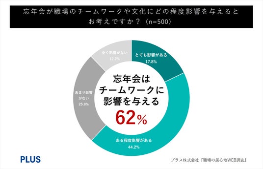 続いて、「職場のチームワークや文化に対する忘年会の影響度」について尋ねました。