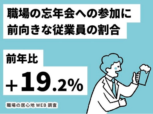 職場の忘年会への参加に前向きな従業員の割合、前年比+19.2%