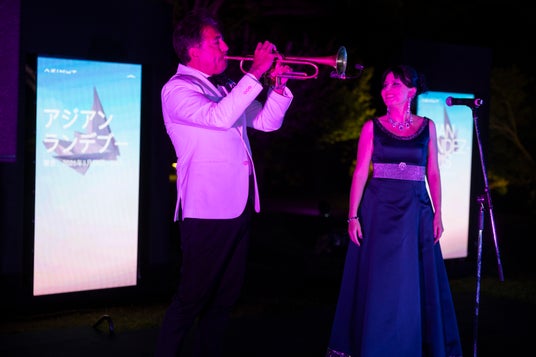 1日目の夜はイタリア大使館にてレセプションを開催。和太鼓の演奏による華やかな歓迎に続き、イタリア大使 ジャンルイジ・ベネデッティ氏が登壇し、温かいウェルカムスピーチで来場者を迎えました。また、イタリアを代表するスパークリングワインブランドFerrariやミラノを拠点に活躍するミシュランシェフ、カルロ・クラッコ氏による洗練された立食形式のビュッフェが振る舞われ、来場者はイタリアンガストロノミーの真髄を堪能していました。そして圧巻のアリアが披露されると、会場は歓声と拍手に包まれ、レセプションの華やかな締めくくりとなりました。