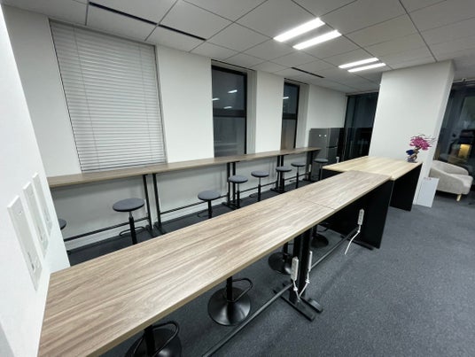 新オフィスは「無駄を排し、効率を重視したシンプルな空間」をコンセプトとし、5階と6階に分かれた2フロア構成です。6階には、集中して作業に取り組める執務スペースと、リラックスできる休憩スペースを配置。カフェのようなカウンター席とファミレスのようなソファー席があり、ランチやコーヒーブレイクにぴったりの空間です。